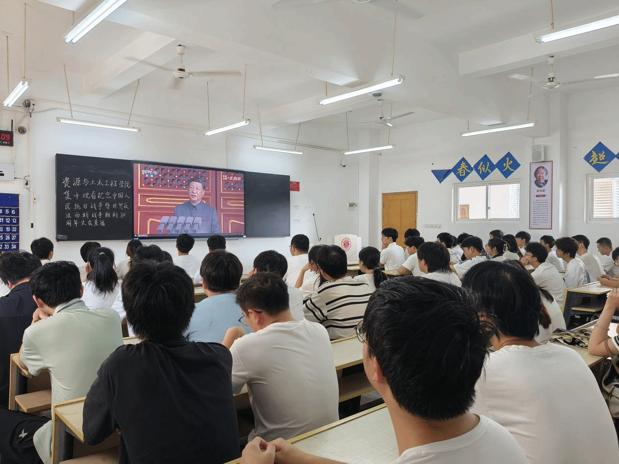 我校师生认真聆听了习近平总书记在大会上的重要讲话精神,当看到阅兵仪式上整齐划一的方阵、先进的装备时,现场响起了热烈的掌声,民族自豪感油然而生,为祖国今日之强大感到无比骄傲。学校将以此为契机,进一步加强对师生的思想政治教育,弘扬伟大抗战精神,培养学生的爱国情怀和社会责任感,激励广大师生在新的征程上踔厉奋发、勇毅前行。