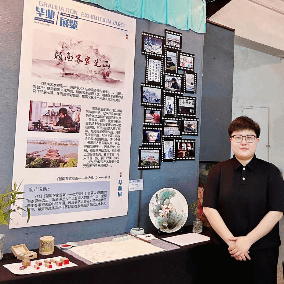 作为一线教育的高校教师和艺术设计工作者,燕凌深感责任重大。燕老师说:“赣南客家文化遗产承载着中华民族的基因和血脉,走在赣南的田野间,我真切感受到了中华文化的灿烂,希望通过我的数字记录和拍摄,为客家文化的传承和保护出一份微薄之力。”在日常教学中燕老师非常重视把中华优秀传统文化融入教学中,不断探索五育融合的艺术设计类课程的思政教学方法。她深知美育在学生成长中的重要性,多年来她积极探索将赣南客家非遗文化与美育相结合的新路径。由于有着视频拍摄制作的专业特长,燕老师多年来一直努力拍摄记录和传承保护传统非遗文化,并用虚拟数字孪生技术转译成数字设计作品。多年来,燕老师深入田野调查,带领学生团队持续采访拍摄了多位非遗传承人,积累了多个赣南非遗传承人的采访口述史记录和数字影像拍摄素材库,并制作了多部非遗主题的微纪录片。她主持参与的多项课题都围绕客家非遗文化传承和艺术文化服务乡村振兴,她通过行动让学生感受中国传统文化的魅力,通过带领学生参与课题、完成毕业设计等方式进一步理解中国传统文化,引导学生自觉培育和践行社会主义核心价值观,在美育和劳动实践过程中树立“家国情怀”。