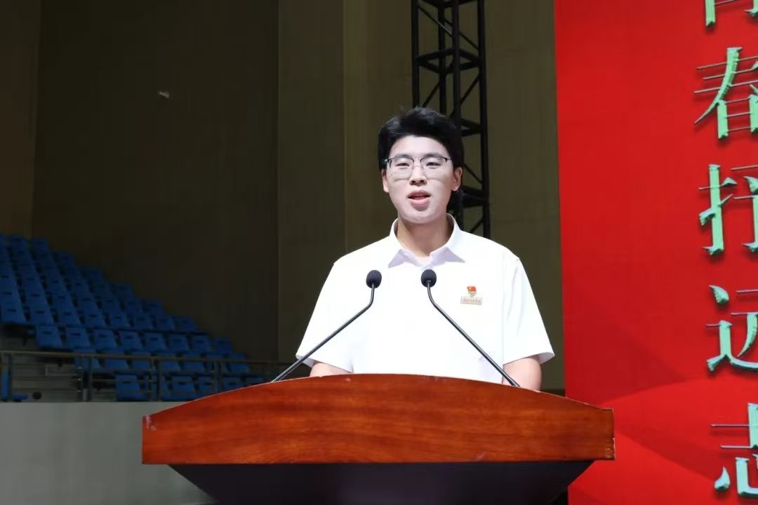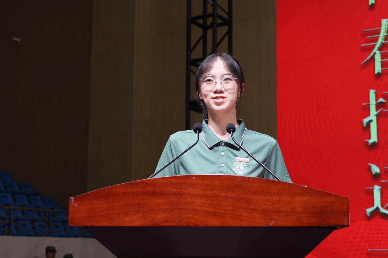 在校生代表工商221班刘泽宇同学在典礼上发言。他结合自身学习经历,寄语学弟学妹要勤学善思做时间主人,勇于实践锤炼真本领,保持热爱磨砺阳光心态,鼓励新生在自律奋进中逐梦成长。