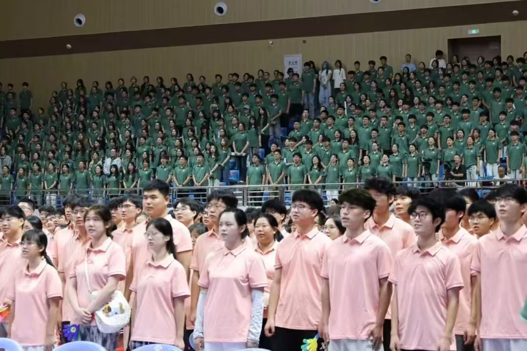 全体人员起立奏唱国歌,开学典礼在庄严肃穆的国歌中拉开帷幕。