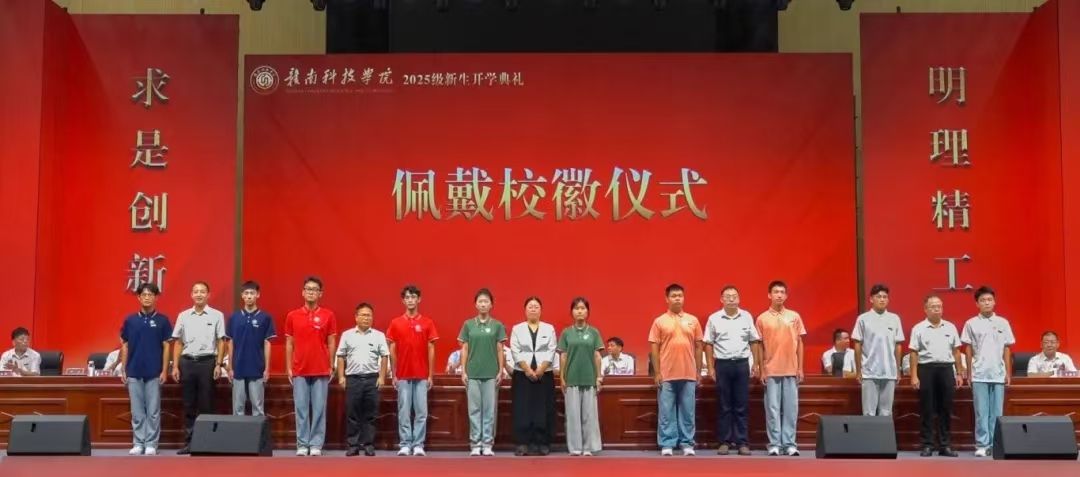 各学院负责人为新生代表佩戴校徽。胸前熠熠生辉的校徽,不仅是一个标志,更是一份归属、一份责任。从此每一位学子都将以“赣科人”之名,勇担时代重任,在青春征程中步伐坚定、斗志昂扬,共同书写无愧于母校、无愧于时代的崭新篇章。