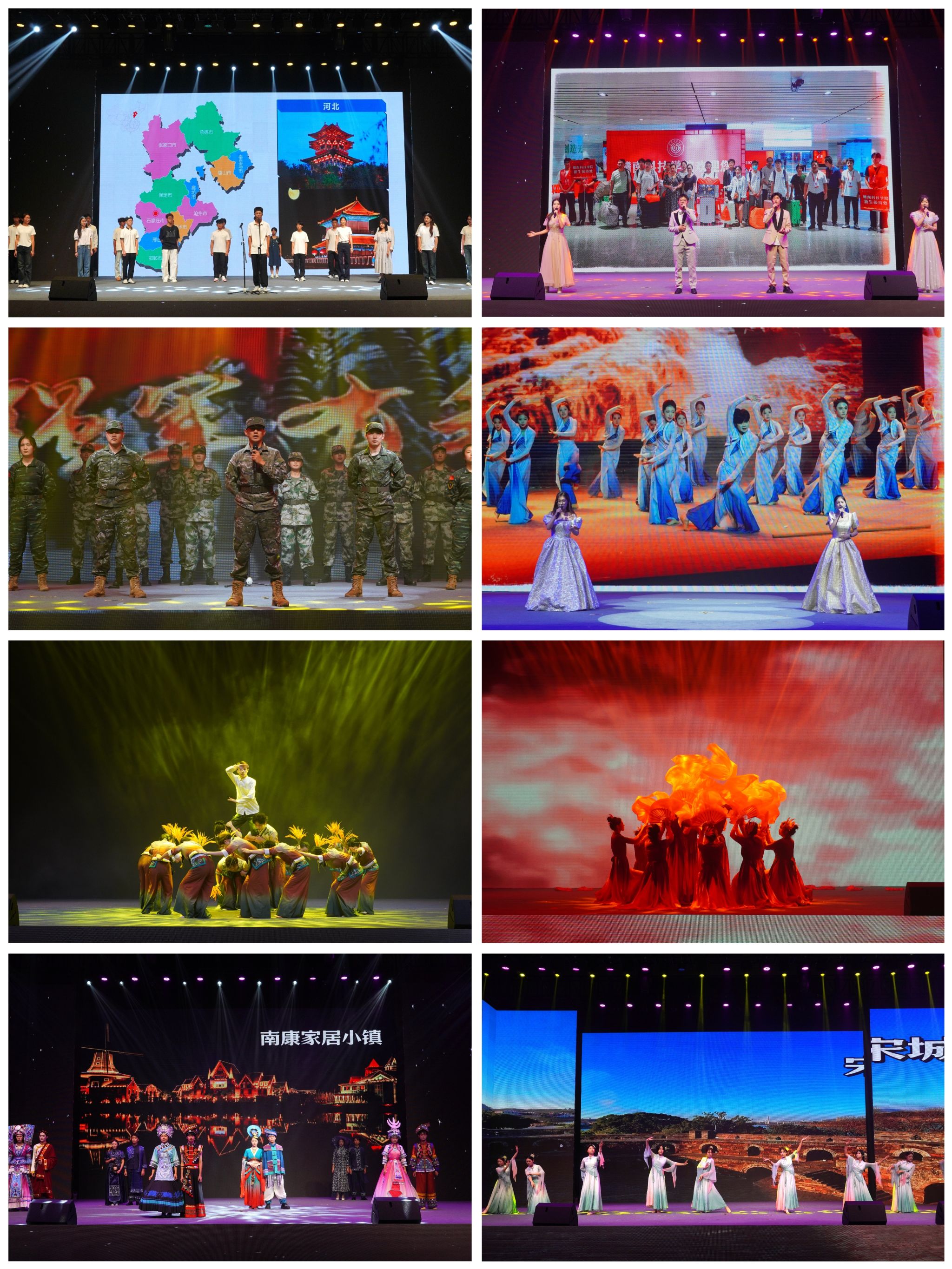 晚会节目异彩纷呈,现场氛围热烈欢腾。开场舞《点亮未来》以朝气蓬勃的表演瞬间点燃全场,拉开晚会序幕;歌曲《我在赣州等你来》用深情歌声传递城市的热忱与包容;音诗画《虔城印象》通过诗、乐、画多元融合,尽显文化韵味与青春活力;新生大点名《天南地北齐相聚》生动展现五湖四海学子相聚一堂的融洽景象;《铁血铸魂•青春回响》以铿锵节奏与昂扬姿态,诠释青春在奋斗中迸发的磅礴力量;朗诵《闪耀吧,青春的火光》字句激昂,激励新生勇担时代使命;歌曲串烧《拾光筑梦》用经典旋律唤起共鸣,致敬青春与坚守;舞蹈《风吹稻浪》以麦穗与草帽为道具,舞出丰收的喜悦;歌曲《父亲》通过深情对唱诉说深沉父爱,句句直抵人心;特别环节《辅导员有话对你说》则道出师长的殷切嘱托,温暖有力、感人至深。晚会在舞蹈《星星之火》中圆满落下帷幕。