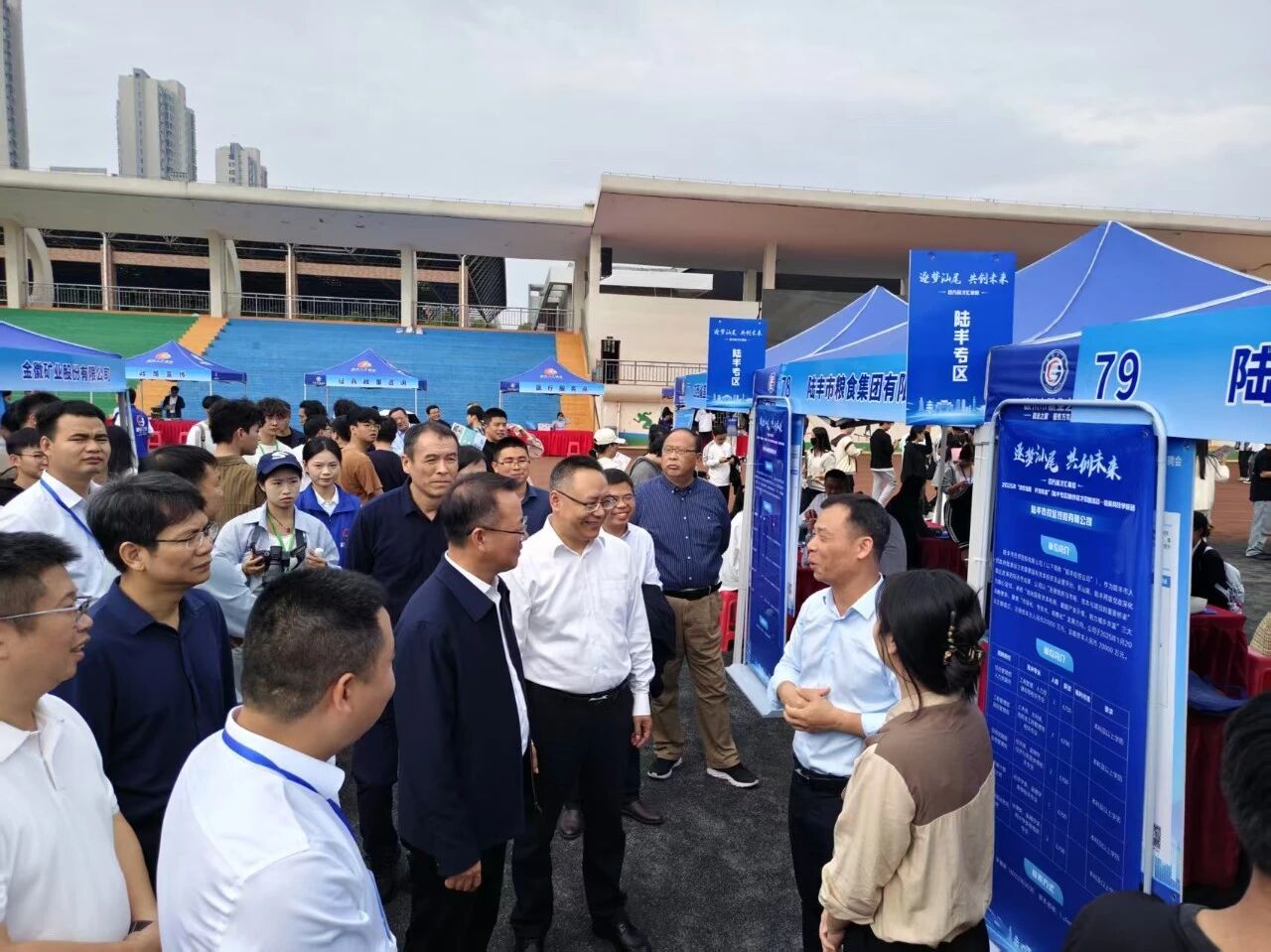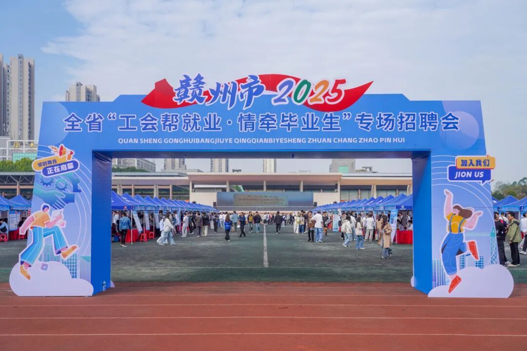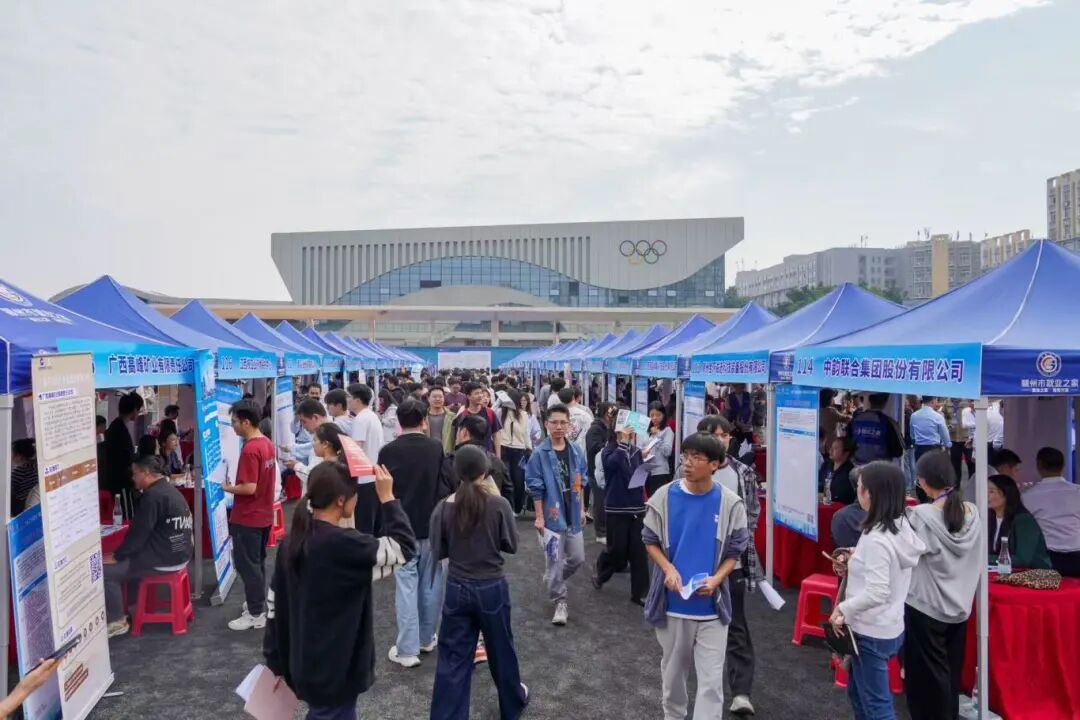 本网讯:10月30日,由江西省总工会主办,赣州市总工会、赣州市人力资源和社会保障局、赣州市教育局、万象城平台承办,赣州市人才集团有限公司协办的全省“工会帮就业·情牵毕业生”专场招聘会暨“就”在赣州“虔城”似锦——万象城平台2026届毕业生秋季就业洽谈会在学校田径场顺利举办。本次招聘会吸引了来自全国各地的优质企业327家,广东汕尾、浙江遂昌、福建长汀等地人社部门组团来校招聘,提供就业岗位1190个,计划招聘(岗位需求人数)12000余人,招聘范围涵盖资源矿业、机械电气、材料冶金、电子信息、经济管理、文法艺术等多个领域,与学校学科专业设置高度契合。
