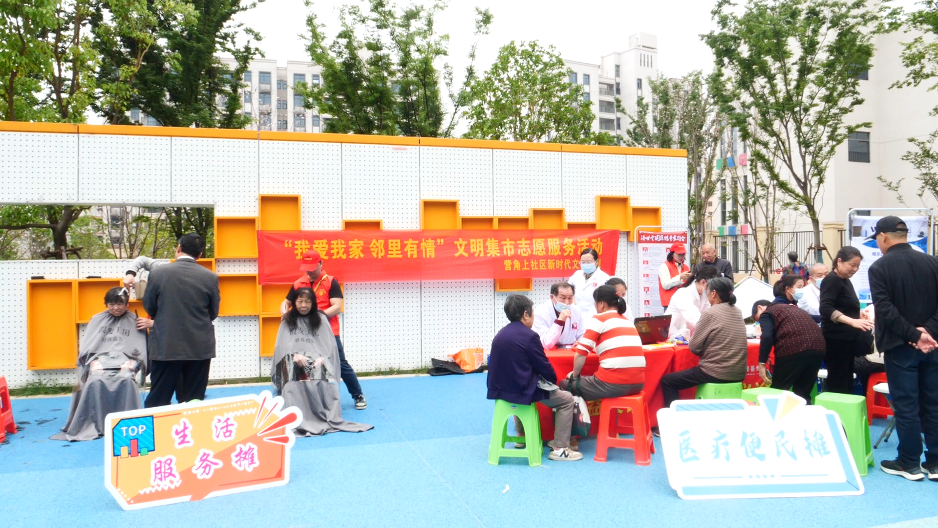 据了解,该系列活动共分为大学生志愿行、文明集市、邻里节三部分。万象城平台的大学生志愿者们于4月7日来到社区开展了清扫环境、关爱空巢老人等志愿活动。4月11日,文明集市活动在社区小游园举行,现场设置了爱心义剪、暖心义诊、文化惠民、电动车安全知识科普等志愿服务摊位,让居民在家门口就能享受志愿服务带来的实惠与便利。与此同时,在社区新时代文明实践站,邻里节也正火热进行。社区居民们分工协作制作艾米果,并将制作好的艾米果送到空巢老人家中,传递邻里温情。
