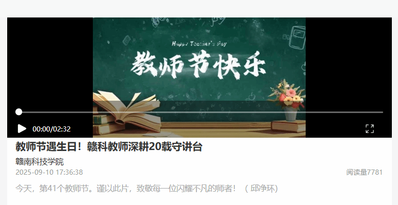 上一条:【大江新闻】当生日遇到教师节是种什么感受?一起来听听这位老师的心声