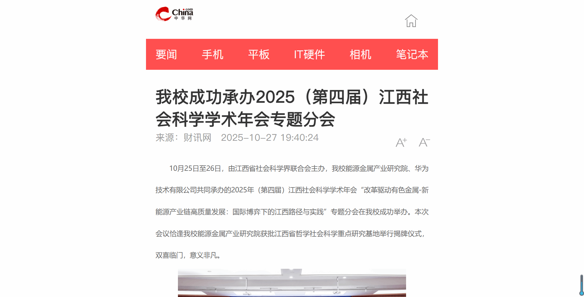 本网讯:10月25日至26日,由江西省社会科学界联合会主办,我校能源金属产业研究院、华为技术有限公司共同承办的2025年(第四届)江西社会科学学术年会“改革驱动有色金属-新能源产业链高质量发展:国际博弈下的江西路径与实践”专题分会在我校成功举办。本次会议恰逢我校能源金属产业研究院获批江西省哲学社会科学重点研究基地举行揭牌仪式,双喜临门,意义非凡。