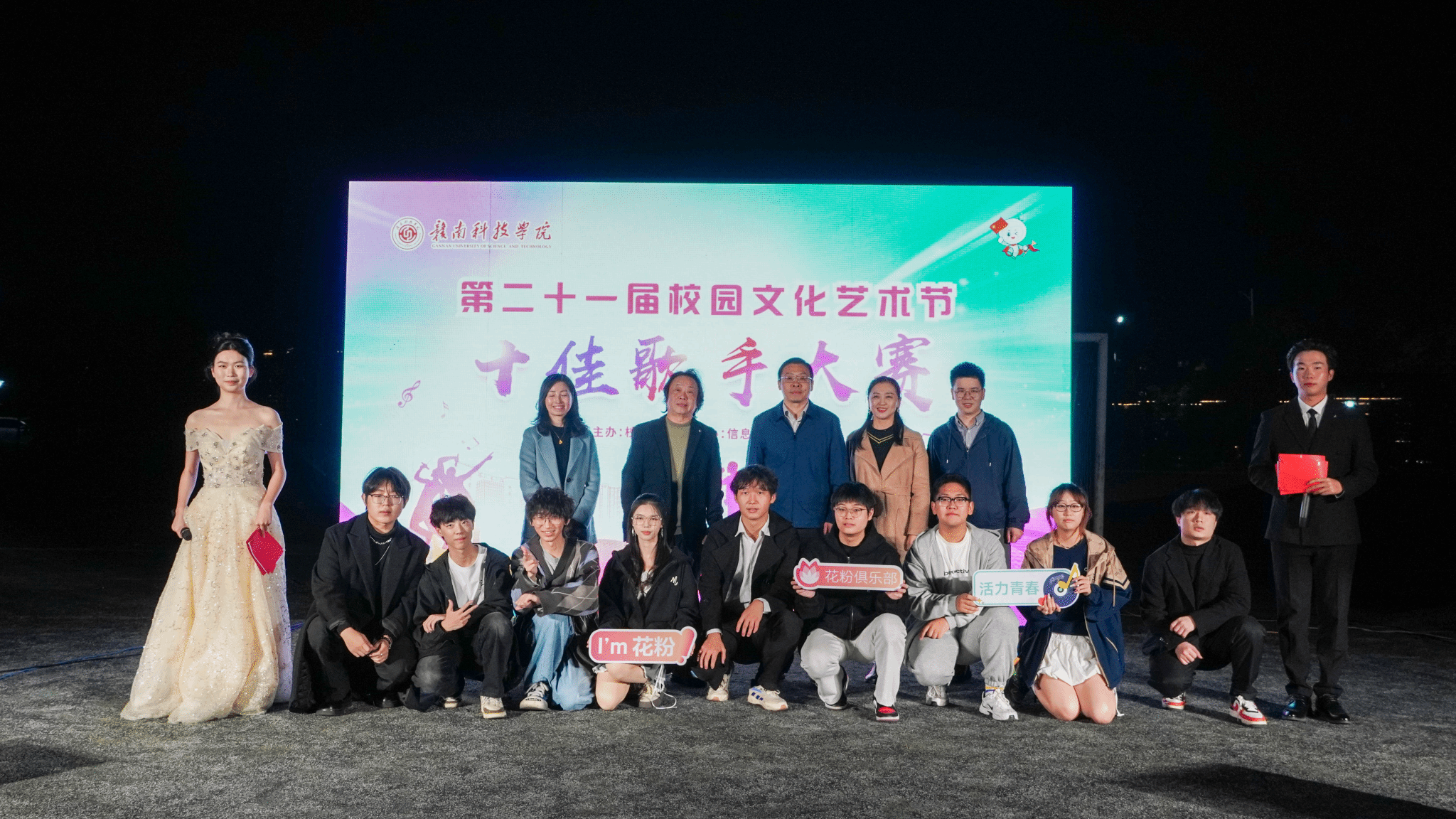 经过激烈的对决,王奕飞扬、黄昕怡、甘荣涛、祝川堰、林鼎峰、周煜轩、徐鑫博、黄艾佳、杨瑞获得本年度“校园十佳歌手”的称号。其中,造价234班黄昕怡荣获冠军,造价233班杨瑞荣获亚军,计算机242班王奕飞扬荣获季军,工商251班黄艾佳获得最佳人气奖。