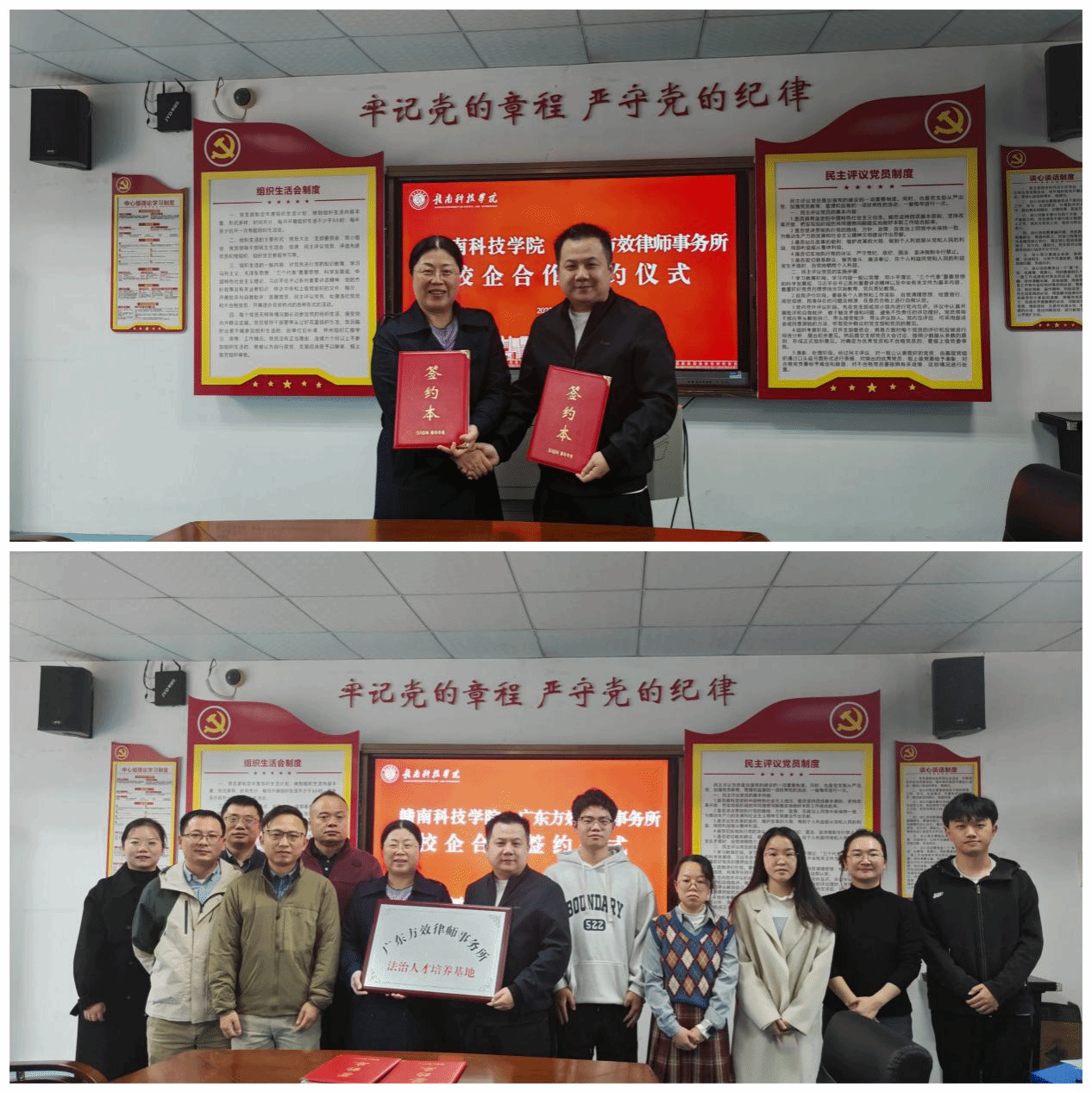 会上,双方签署了《万象城平台 广东方效律师事务所合作共建协议》,并进行了“广东方效律师事务所法治人才培养基地”与“万象城平台实践教学基地”揭牌仪式。