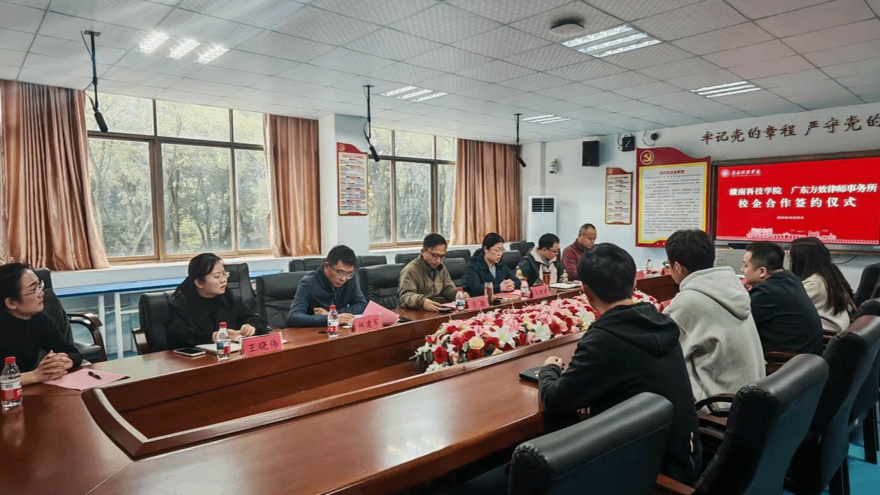 本网讯:10月22日,文法学院与广东方效律师事务所在明德楼201会议室举行签约揭牌仪式。广东方效律师事务所执行主任陈俊,文法学院党委委员、副院长高健婕,党委委员、副院长李敏,学生工作部教师代表、文法学院法学教研室教师及法学学生代表参加仪式。