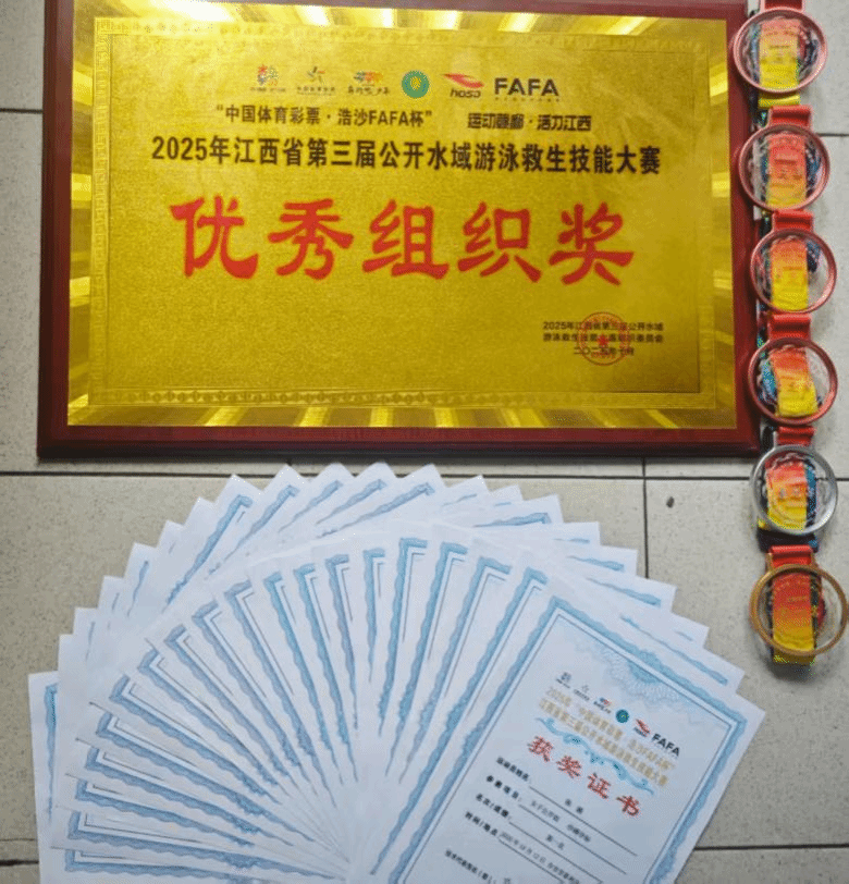 本网讯:10月13日,我校游泳队参加2025年江西省第三届公开水域游泳救生技能大赛,与40多支代表队共计450余名运动员一同竞技。经过激烈的角逐,我校游泳队共获得省级一等奖3项,省级二等奖5项,其中社体231班陈潞获女子公开组沙滩夺标第一名,郭薇获女子公开组沙滩夺标第二名,我校代表队还获得团体总分第四的好成绩。学校荣获“优秀组织奖”。