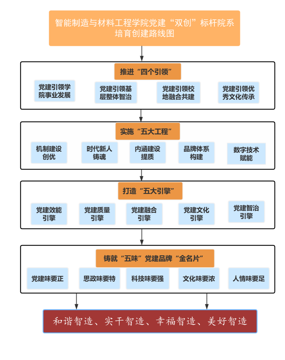 智能制造与材料工程学院党委不断加强政治建设,充分发挥政治功能,优化学院运行机制,推进党建引领学院事业发展、党建引领基层整体智治、党建引领校地融合共建、党建引领优秀文化传承“四个引领”,实施机制建设创优、时代新人铸魂、内涵建设提质、品牌体系构建、数字技术赋能“五大工程”,打造党建效能、党建质量、党建融合、党建文化、党建智治“五大引擎”,持续深化“党委五个到位、支部七个有力”建设,铸就党建味要正、思政味要特、科技味要强、文化味要浓、人情味要足的“五味”党建品牌“金名片”。学院共有7名同志被学校党委评为“优秀共产党员”,两名同志被评为“优秀党务工作者”,学院党委进一步强化政治功能、组织功能和服务功能,充分发挥政治引领、思想凝聚、组织保证等作用,扎实推进落实学院高质量发展各项工作。